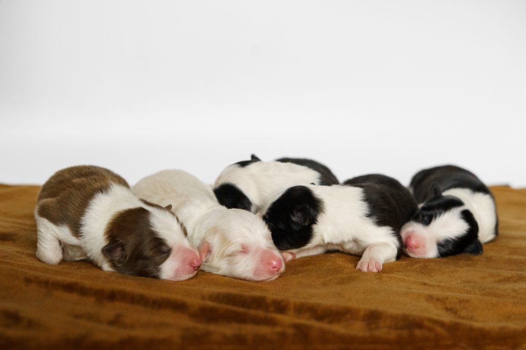Am 07.11.2025 hat Evy fünf gesunde Welpen geboren. In einer völlig unkomplizierten Geburt erblickten 2 Hündinnen in schwarz-weiß und ee red-white und drei Rüden in schwarz-weiß und chocolate-weiß das Licht der Welt.
